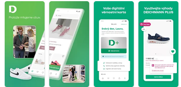 Objevte aplikaci DEICHMANN – váš osobní nákupní asistent pro boty, kabelky a doplňky. Trendy značky, doprava zdarma a 60 dní na vrácení. Nakupujte snadno a s přehledem!