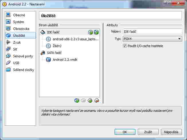 5.krok: Vytvořili jsme nové zařízení ale ještě se nemá z čeho bootovat, tak zvolíme bootovací CD. Klikneme dvakrát na obecné. ↑