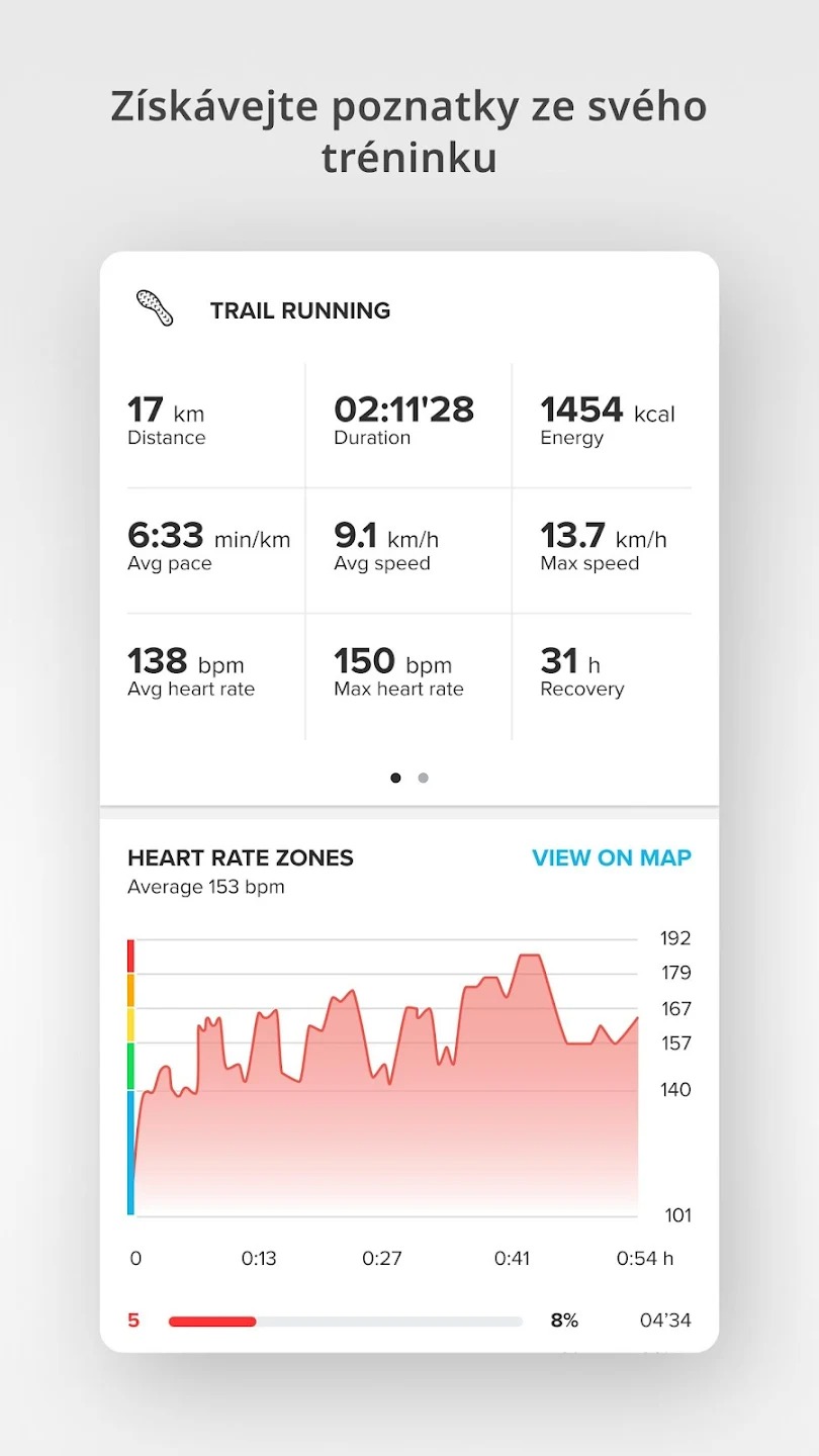 Kromě toho aplikace Suunto nabízí souhrny cvičení, které zahrnují analýzu zón srdečního tepu a čas strávený v jednotlivých zónách. To vám umožní lépe pochopit vaši fyzickou kondici a efektivně plánovat tréninkové plány.