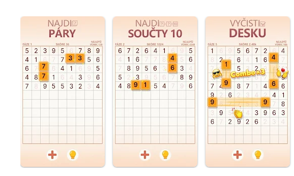 - Pokud už nejsou žádné možnosti, klikněte na „+“ a hra zkopíruje zbývající čísla, čímž se vytvoří nové příležitosti k párování.