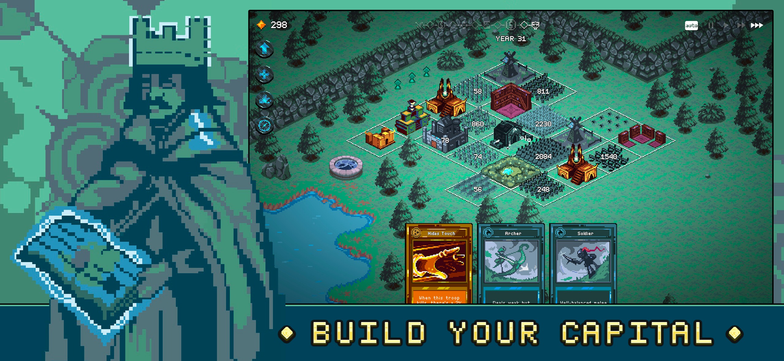 Quest Mode přináší dodatečné výzvy, které umožňují experimentovat s různými taktikami a strategiemi. Po roce 33 můžete dále testovat své království proti nepřátelům, kteří exponenciálně sílí. Hra byla vydána v early access v květnu 2025 pro Windows a macOS a získala převážně pozitivní hodnocení.