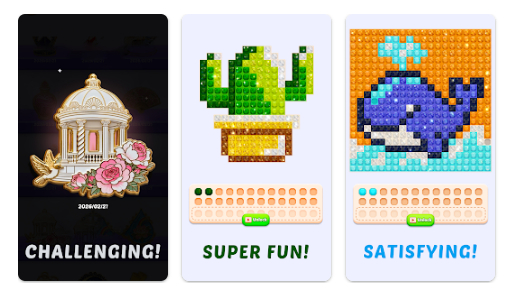 S postupem hry se úrovně stávají čím dál zajímavějšími a nabízejí nové výzvy. Objevíte širokou škálu motivů a témat, od přírodních scenérií až po abstraktní vzory. Pravidelné aktualizace přinášejí exkluzivní časově omezené kolekce, takže vás hra dokáže bavit po dlouhou dobu.