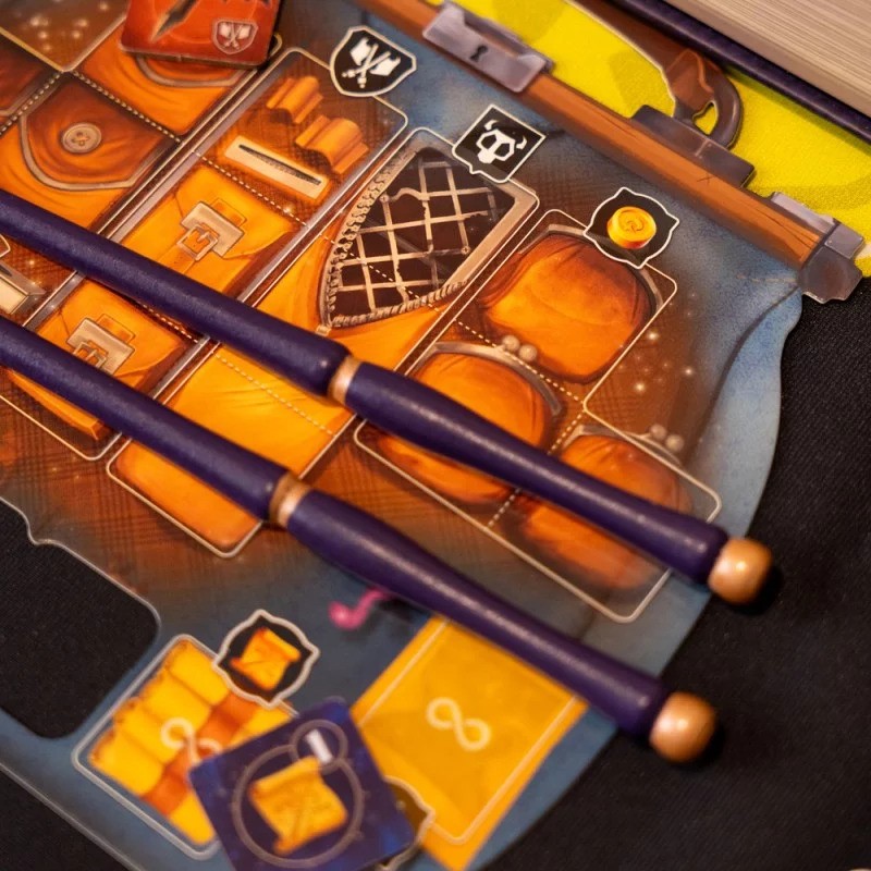 Získané žetony umisťujete na svůj kouzelnický kufr (desku hráče), kde máte omezený počet polí pro tyto žetony, takže s nimi musíte nakládat co nejvýhodněji.