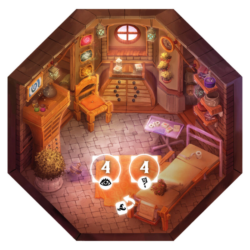 Na žetonech najdete ingredience, s nimiž vytvoříte lektvary, zbraně, se kterými ulovíte příšery, samotné příšery, zlato a kouzla. Ta vám umožňují vybrat si nějakou kartu se speciální schopností. A proč tyhle žetony sbíráte? Na spodu věže (tedy až postupně odhalíte všechna patra místností) vás čeká závěrečný souboj se zlovolnými čaroději. Každý z nich má specifickou podmínku pro to, abyste je porazili, a přináší hodně vítězných bodů.