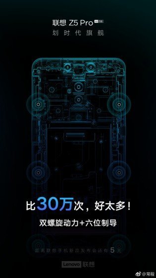 Lenovo oznámí svůj nový telefon Lenovo Z5 Pro za pár dní a to 1. Listopadu. K dispozici bude vysouvací mechanizmus, bezpečnostní čip a čtyři kamery. vysouvací mechanizmus je manuální, tedy stejně jako u Xiaomi Mi Mix 3.