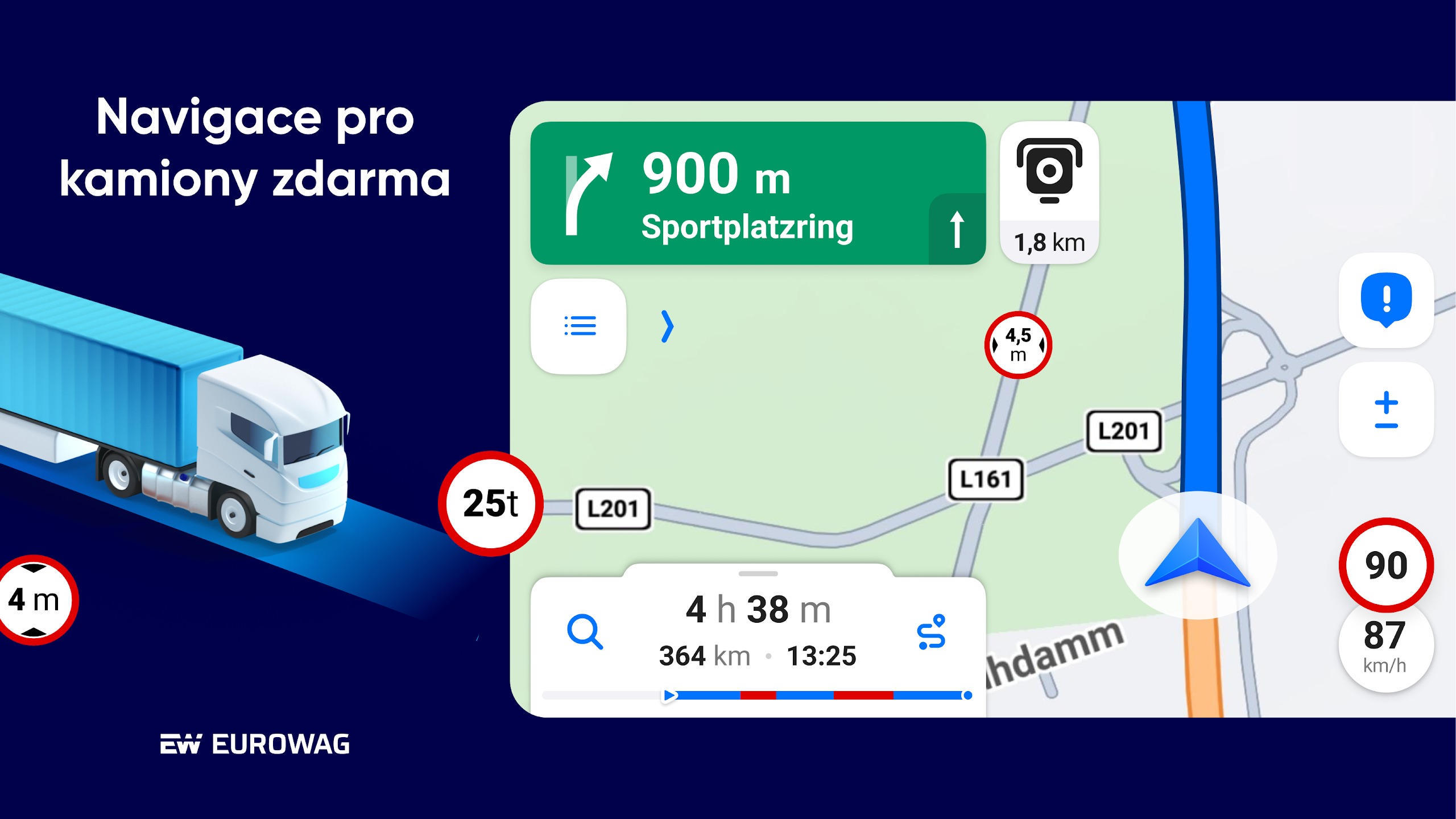Eurowag Navigation – Truck GPS je specializovaná navigace pro kamiony a nákladní vozidla. Nastavte profil vozidla, získejte optimální trasu, info o parkování a dopravě v reálném čase.