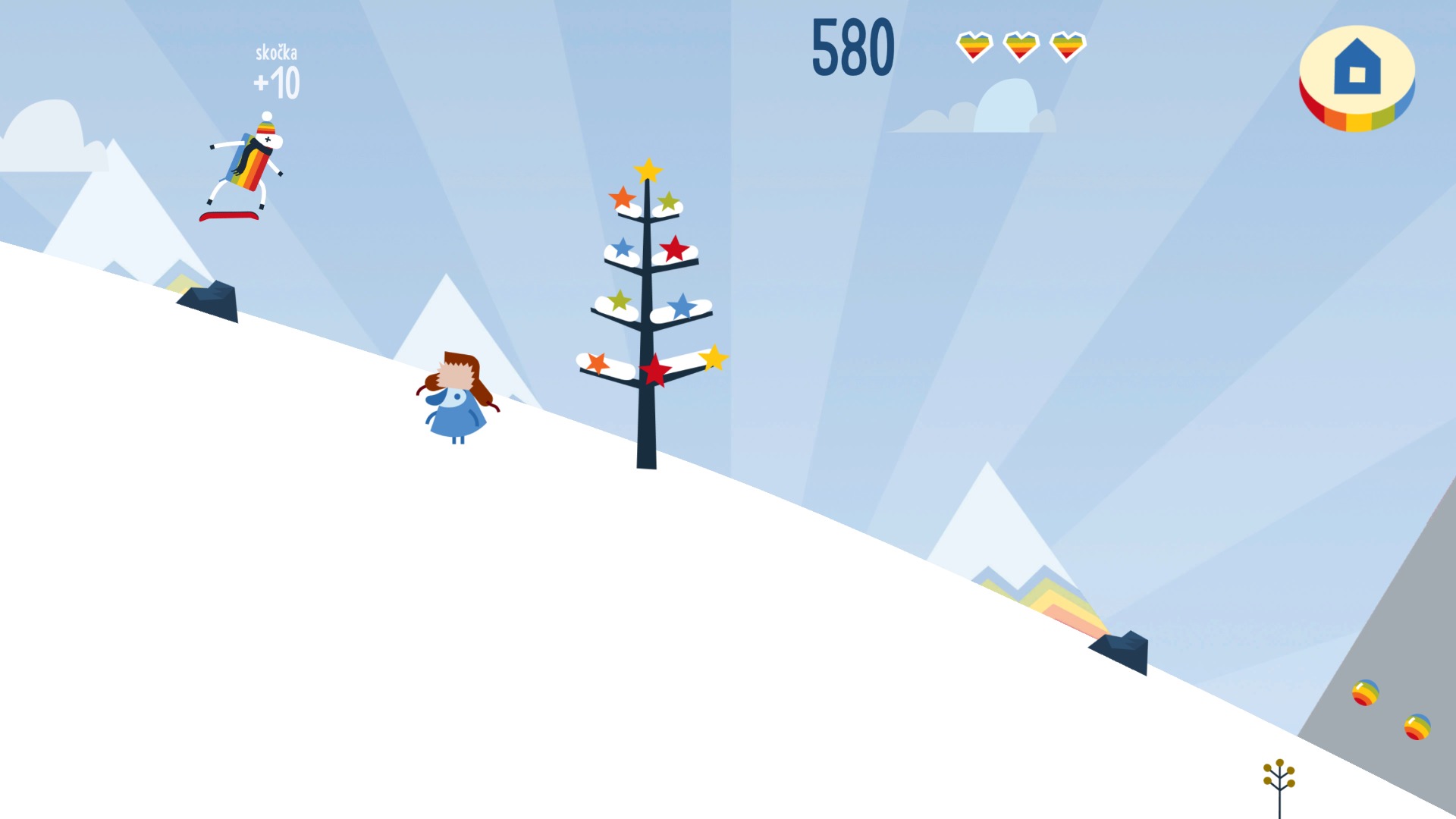 Když sněhová nadílka dorostla do správné výšky, stádo už nevydrželo stát na místě. Všechny ovečky se nadšeně rozběhly, aby zahájily své zimní dobrodružství. Jejich cílem bylo jediné – užít si sjezd z kopce dolů na prkně, které si hlídaly jako ten největší poklad.