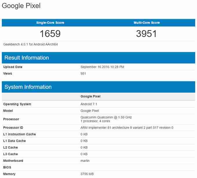 Google Pixel XL zachycen v testu s Android 7.1 N, 4GB RAM