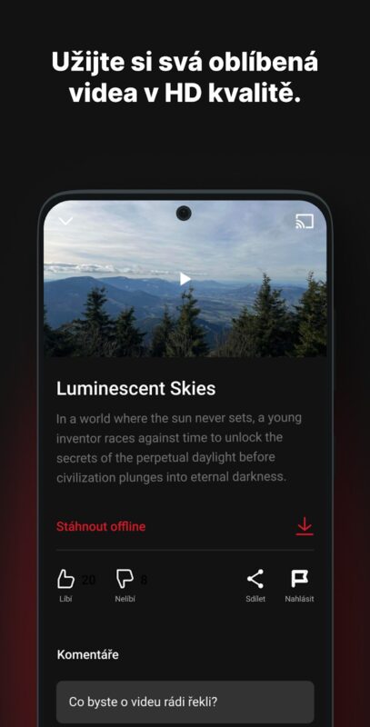 - HD kvalita a možnost offline přehrávání.