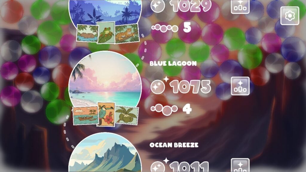Relaxubble motivuje hráče systémem sběratelských známek. V každé úrovni můžete odemknout tři unikátní razítka na základě dosaženého celkového skóre. To vytváří motivaci vracet se ke starším úrovním, sledovat vlastní zlepšování a kompletovat herní index. Tyto drobnosti z Relaxubble dělají must-have aplikaci pro všechny milovníky klidných her.