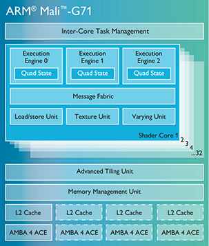 Mali-G71 využívá novou Bifrost architekturu, která má zvládat high-end 4K rozlišení a Virtuální realitu. Samozřejmostí je kompatibilita s API VULKAN, OpenGL ES 3.2. Poběží na frekvenci 850 MHz a 16nm výrobní proces GPU dokáže mít propustnost až 27.2 Gpix/s, což je dvojnásobek oproti Mali-T880.