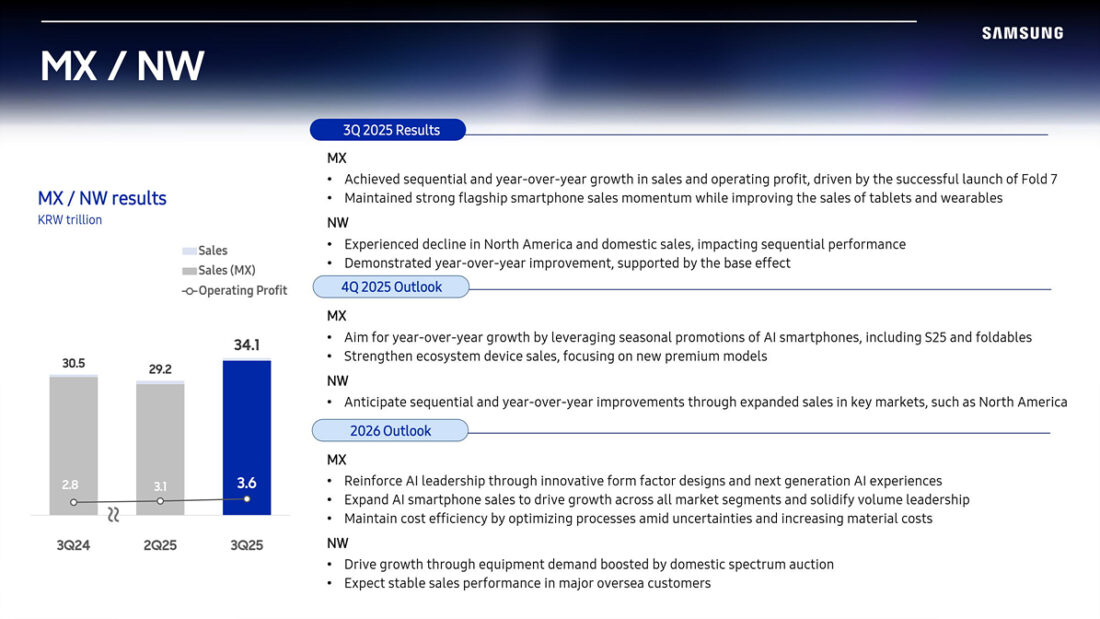 Společnost Samsung oficiálně zveřejnila své finanční výsledky za třetí čtvrtletí a při této příležitosti odhalila první podrobnosti o připravované sérii Samsung Galaxy S26. Viceprezident divize Mobile Experience, Daniel Araujo, uvedl, že nová řada „revolucionalizuje uživatelský zážitek pomocí uživatelsky orientované, nové generace umělé inteligence (AI), druhé generace vlastního čipu a silnějšího výkonu včetně nových foto senzorů.“
