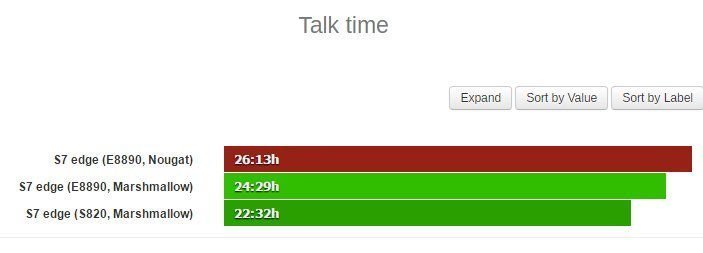 Propad je oproti Android 6 o celých 6,5 hodiny života baterie. Je to docela škoda, když každá vyšší verze Android propaguje lepší správu baterie, každý novou procesor lepší výdrž baterie. Chipsety Snapdragon mají horší výsledky než Exynos chipsety. Jak bude ale vypadat chipset Snapdragon 820, který poběží na Android N. Bude mít také takový propad jako Exynos?