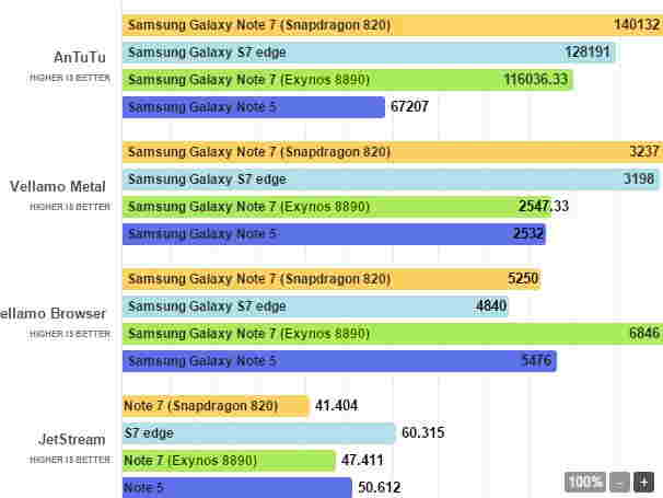 Samsung Galaxy Note 7 Snapdragon 820 vs Exynos 8890 (Evropská verze)